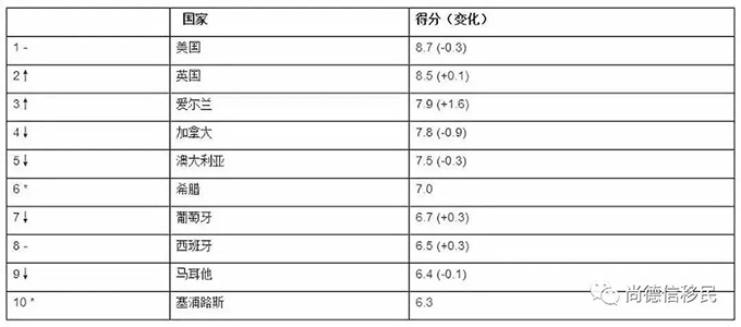 此外,爱尔兰还是个低税国家。多元化而年轻的社会结构和诸多优势使爱尔兰以7.9分上升四位至第三,跃升三甲成移民界黑马。