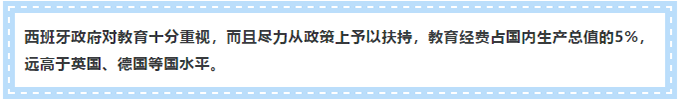西班牙的高校教育水准堪称世界一流。最吸引西班牙移民的一点在于西班牙的教育是享誉整个世界的,其大学文凭得到了国际的公认。