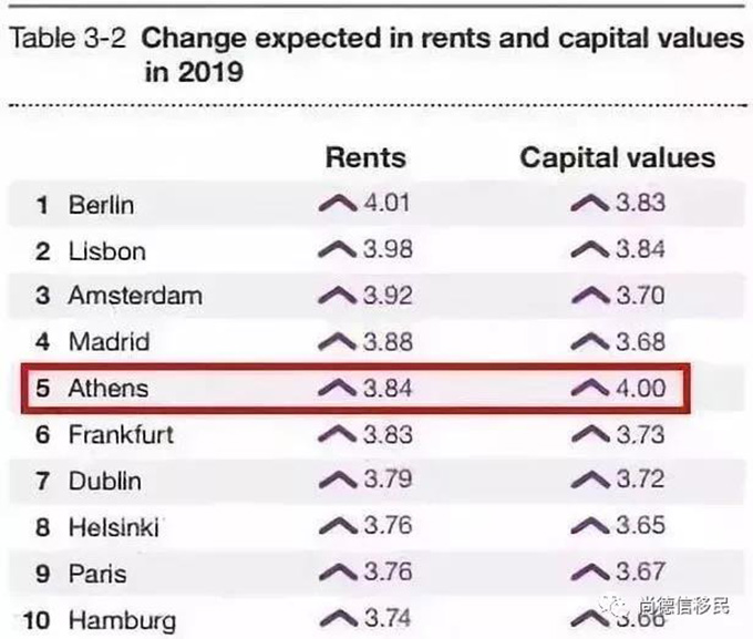 从区域来看,雅典地区的涨势更为喜人,以3.7%的涨幅远远高于全国平均水平。连普华永道在《欧洲2019房地产新趋势》中也对雅典升值空间抱有十分乐观单态度,预测其租金回报为欧洲第五位,资本增值预测位居欧洲首位。