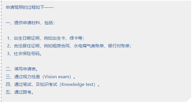 在美国驾照相当于身份证(IDENTIFICATION,简称ID)。满16岁但未满18岁,需要先取得“初学者许可(LEARNER'S PERMIT)”才能学开车。年满18周岁及以上,可直接申请。