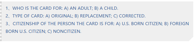 HTTPS://WWW.SOCIALSECURITY.GOV/SSNUMBER/SS5DOC.HTM,上面列了三个问题,每个问题有两到三个选项,分别是: