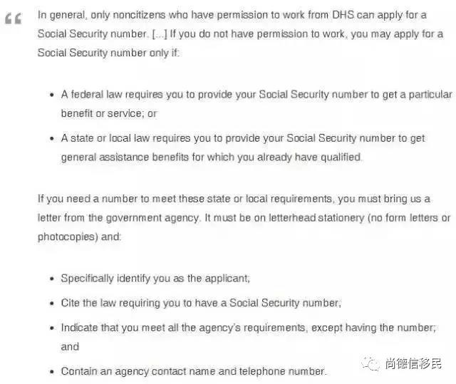 根据社保局 SSA 的规定,只有可以在美国合法工作的人才能申请 SSN,SSA 官网原文如下:
