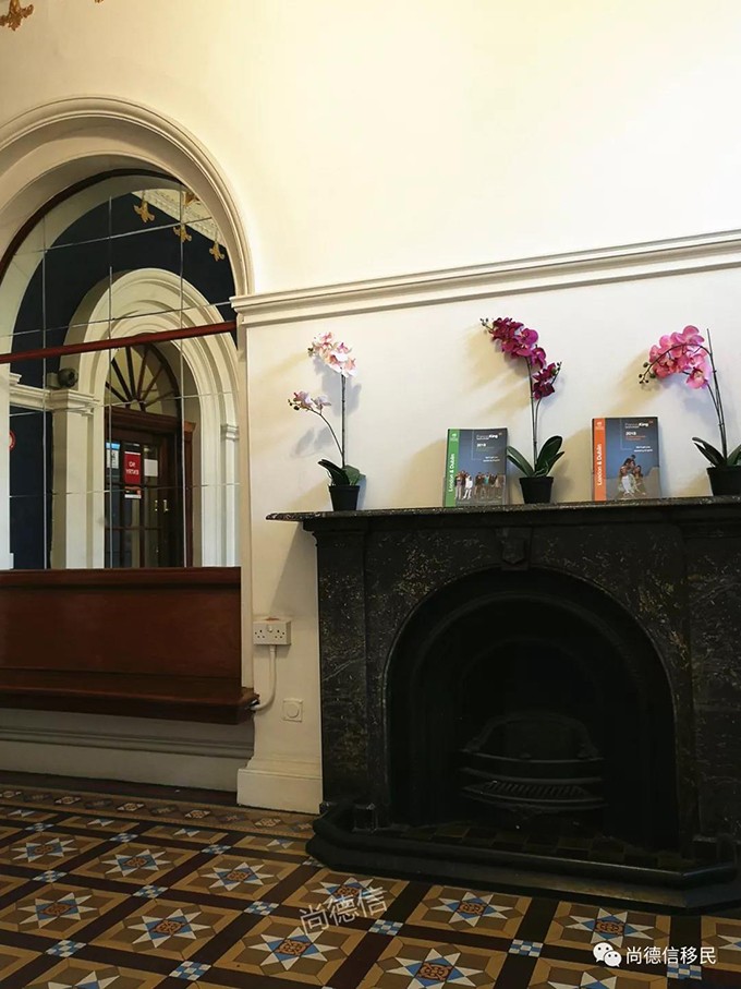 学校内部装饰特别素雅清新,随处可见摆放着的鲜花和书籍。