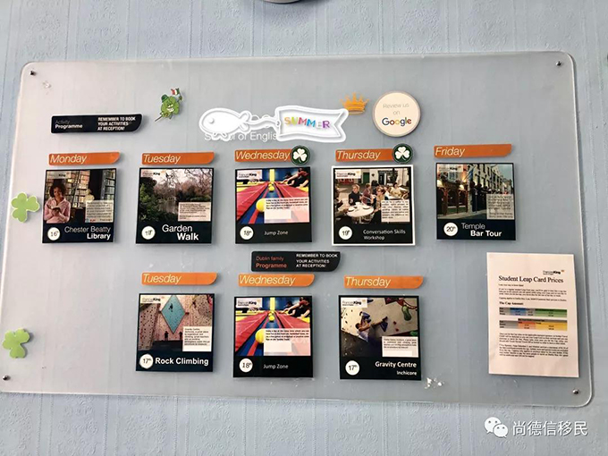 墙壁上挂着为期一周的课程参考,一般情况是半天学习语言课程,半天进行课外活动。