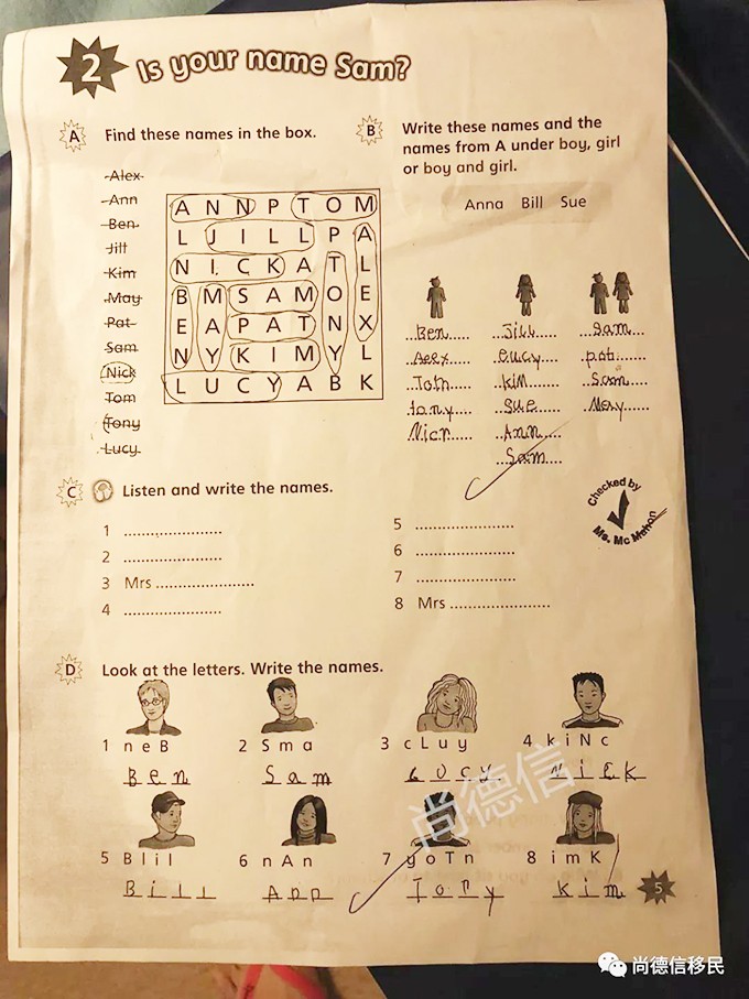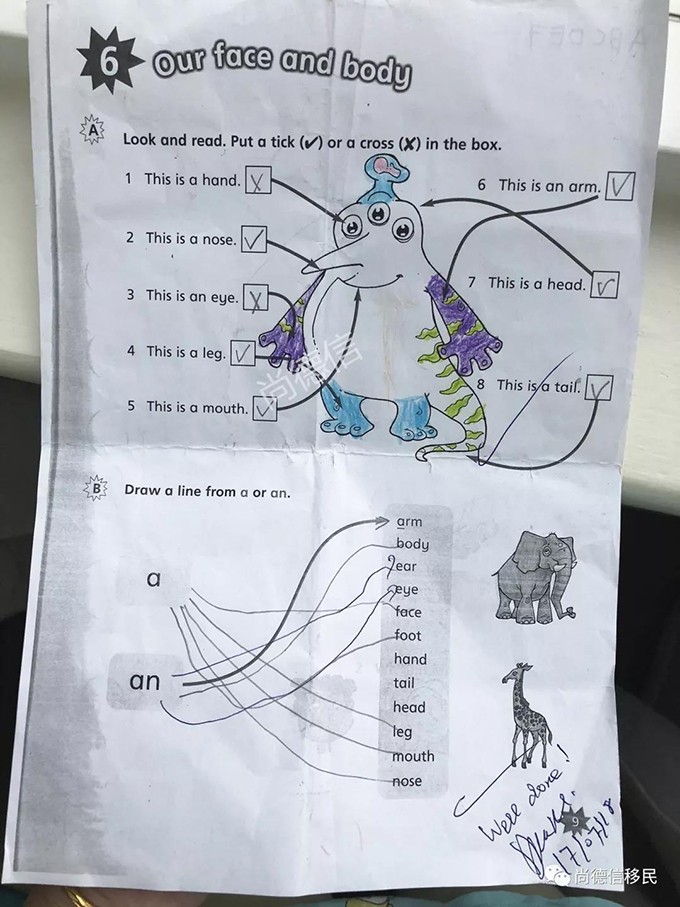 上图是学生的课堂作业。即便有些许错误,但是批注依然是“well done”,国外老师的鼓励真的非常多。