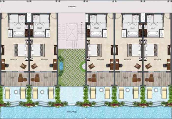 公寓位置: 10栋( 三层,共15间水景套房) 、14 栋( 三层,共15 间水景套房)