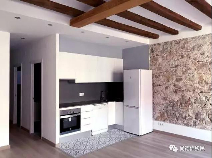 本案的内部装修风格极具西班牙风情,极简的白色和木质暖色调完美契合,给居住者一种高档的生活质感,在该区域非常受欢迎。