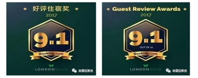 伦敦高端住宅物业团队曾获得booking.com颁发2017年好评住宿奖,客户的总评分高达9.1分(满分10分)!