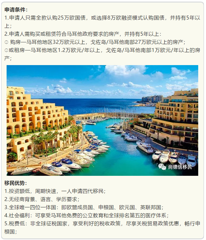 马耳他可能对你来说是个闻所未闻的小国,但“他”的实力却不容小觑,“他”是欧洲一流的金融中心,堪称欧洲“新加坡”。作为地中海的中心岛国,马耳他一直是他国通往欧洲的战略枢纽和贸易中转国,也是企业家投资经商和建立第二家园的绝佳之地。