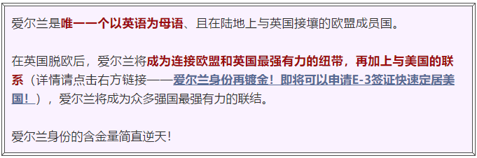 此举之后,投资移民英国的难度和风险的升高不言自明。而爱尔兰投资移民项目的优势则更加凸显!
