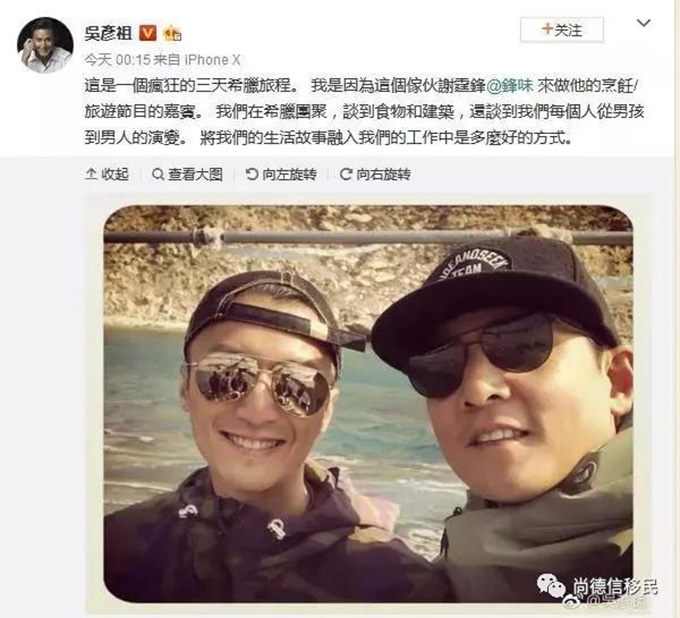 事儿大概是酱紫的:谢霆锋的综艺《锋味》到希腊了!邀请了吴彦祖做嘉宾。两人在浪漫的希腊漫步海边,从诗词歌赋谈到人生哲学......