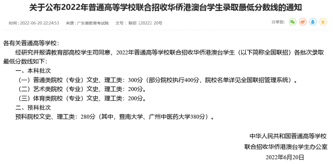 2022华侨生联考分数线正式出炉 time:2022.06.24