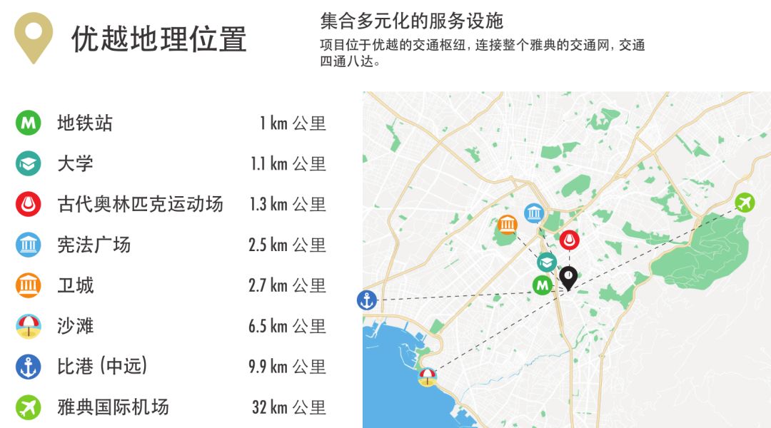 项目位于优越的交通枢纽,连接整个雅典的交通网,交通四通八达。